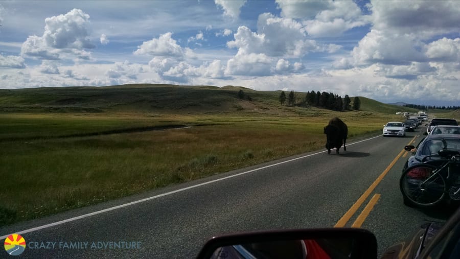 Let me tell you, the first couple of times you see a buffalo in the road it is really cool! By the 10th time you are like “Come on already! Just go around it!” Buffalo traffic jams or really any animal siting can cause a traffic jam that could last for over an hour! There are only single-lane roads in Yellowstone so there aren’t many options. Be prepared for this and know that getting anywhere is probably going to take longer than you think!