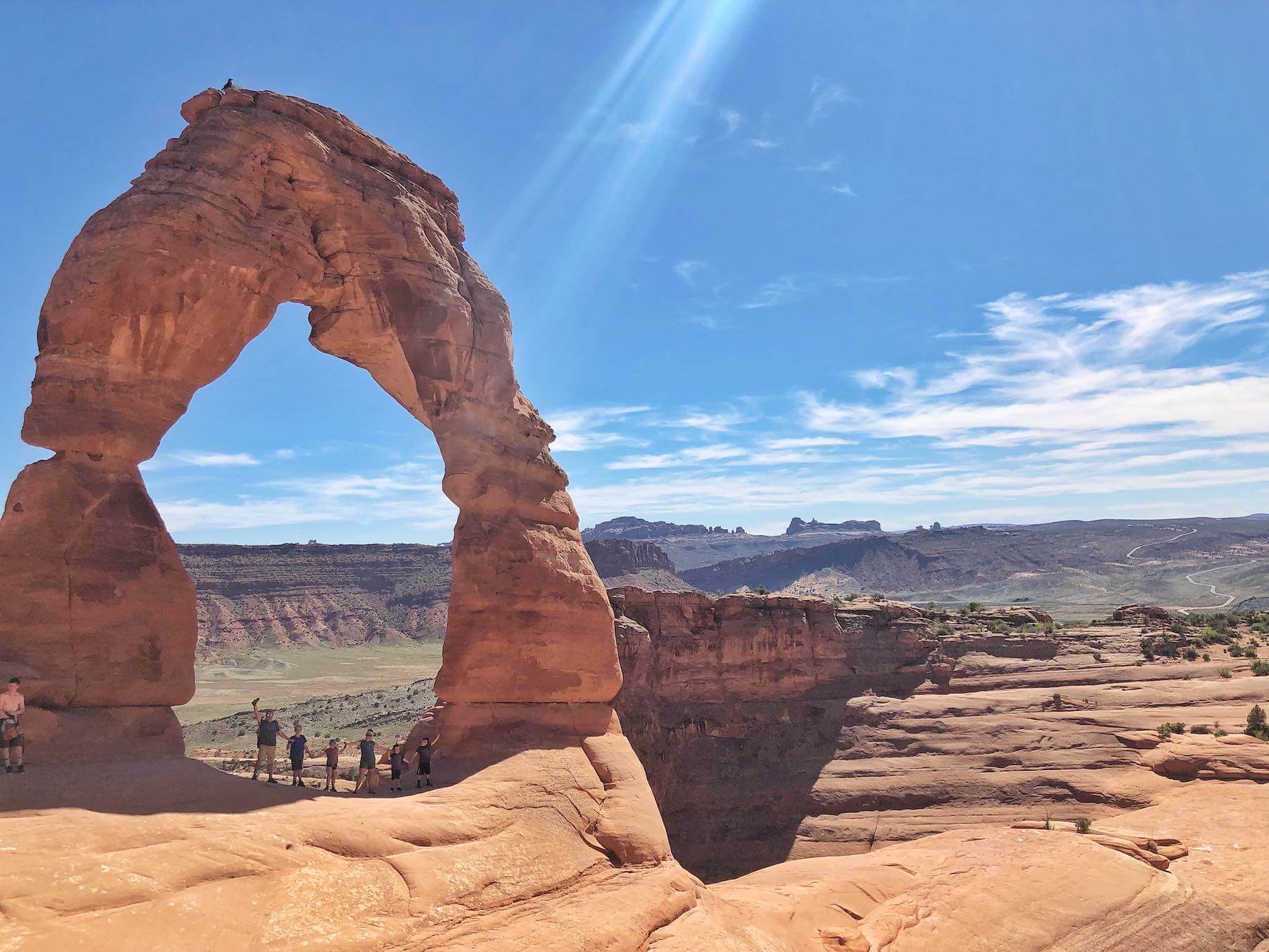 Another great hike is going to Delicate Arch. This hike gets you right under Delicate Arch and offers a much more up close and personal view of the arch than the viewpoints do. This hike is a bit demanding even though it is only 3 miles roundtrip. It climbs about 480 feet and you travel over rocks, through sand, and around some breathtaking cliffs. If you’re brave, you can walk down the side-sloped rock and get a great picture standing under the arch.