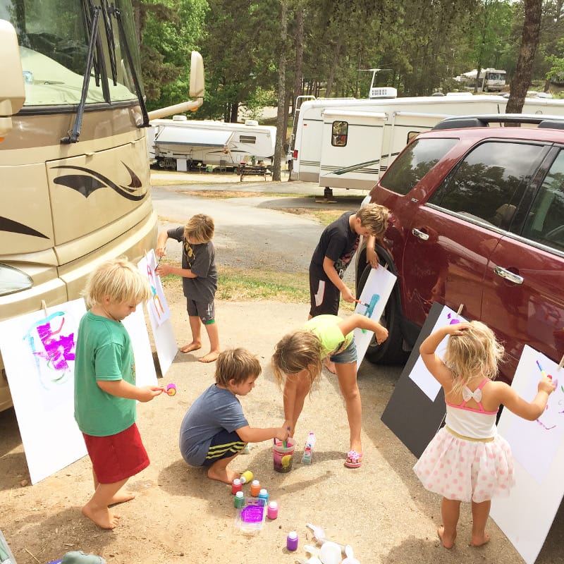 Needless to say the kids had lots of room to run and lots of freedom to kind of do what they wanted. When you move into an RV park, all of a sudden you are living on someone else’s property . . . and they may not want you painting all over their picnic table or even coloring with chalk on their cement.