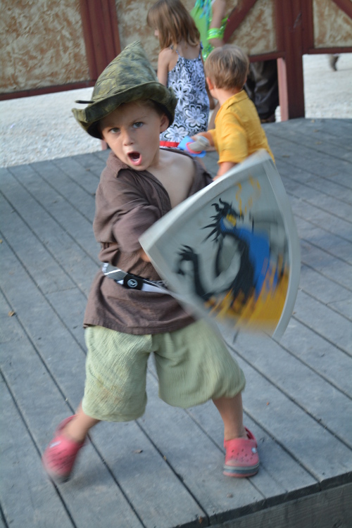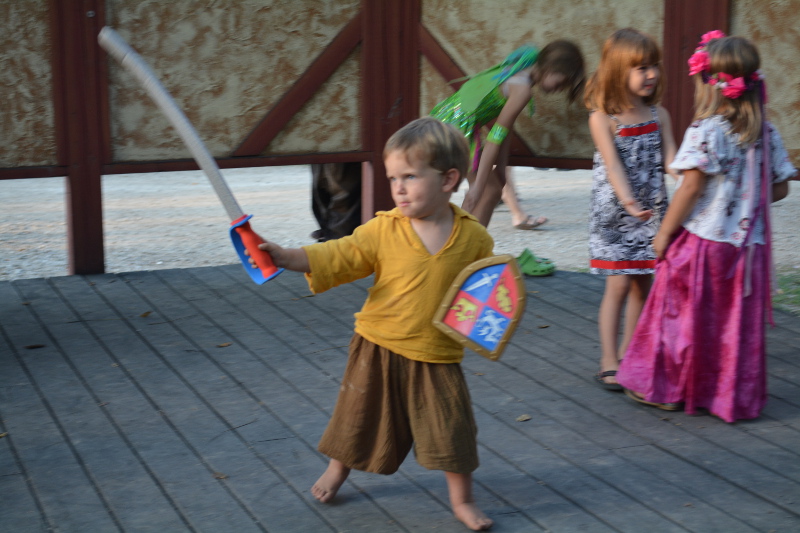 We then spent Sunday at the Bristol Renaissance Faire – Which I highly recommend! We went all out this year and bought costumes for everyone – which makes it a lot more fun! The kids love going there and just playing on the pirate ship, in the sand box, on the stage, and dancing around. They also like the Joust and being Knighted by the queen. We watched the mud show – Trojans, Trojans, We will never break, huh (with a hip thrust)! We left with one large sword and one large hammer!