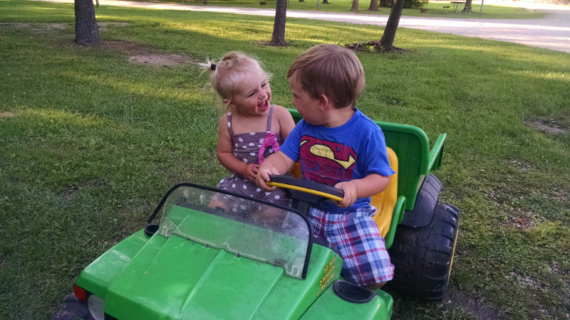Then on Monday we spent the day at the Campground just hanging out – Carson kept asking when everyone was going to leave so we could have the park to ourselves! Here is a picture of the kids getting ready to take over the Campground! It is so fun to watch them come up with projects and ideas for playing!