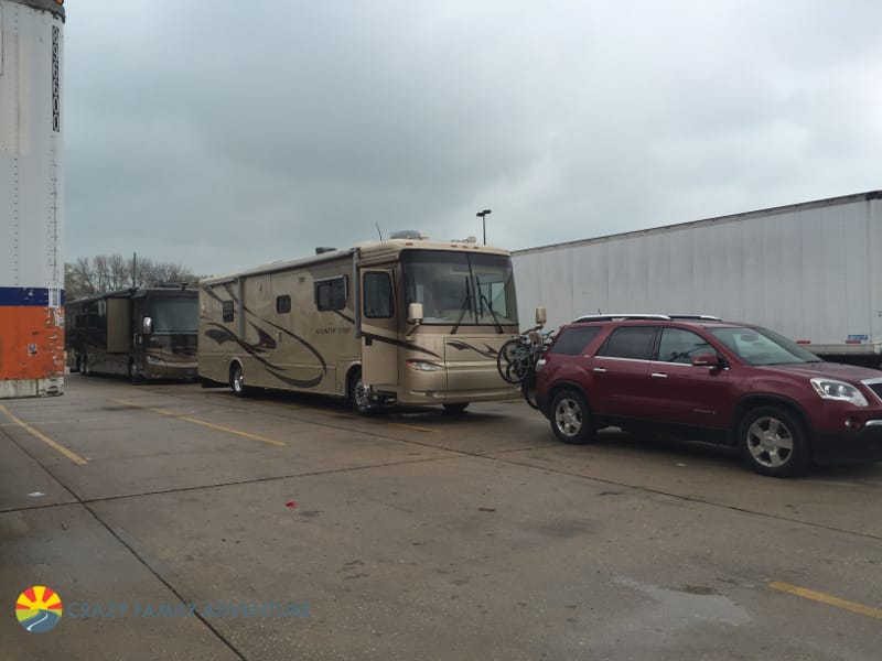 When we were going to visit Chicago we started to Google “Chicago RV parks”, “RV campgrounds near Chicago” and “RV camping near Chicago” and we found out that you could park at McCormick Center parking lot (specifically the McCormick Place Marshaling Yard) – right in downtown Chicago, IL! Score!