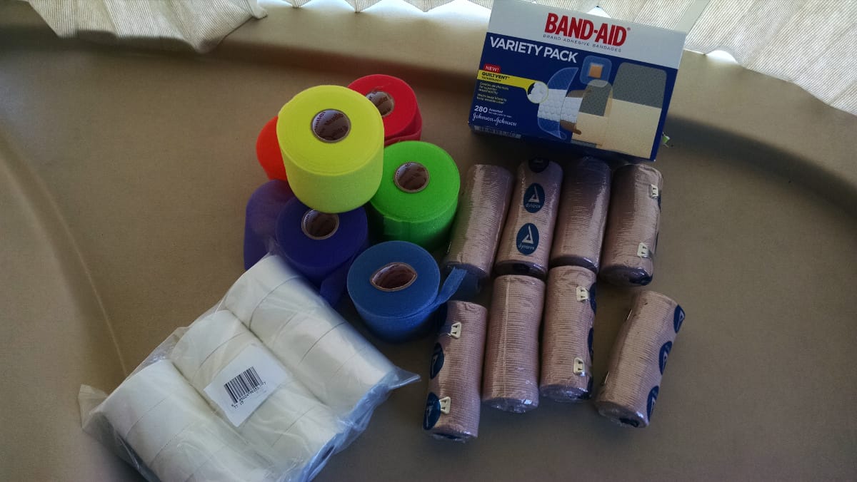 Here is a picture of what Cannon got. Since moving into a RV we have to be careful with toys we just don’t have the room! We have also realized that they don’t really need many more toys then what they have. So we got Cannon the perfect gift for him: Tape, prewrap, bandaids, and ace bandages. We had gotten him a whole box of tape for Christmas and it is already gone! The kid loves tape and wrapping things in ace bandages. The bandaids and prewrap have been great too!