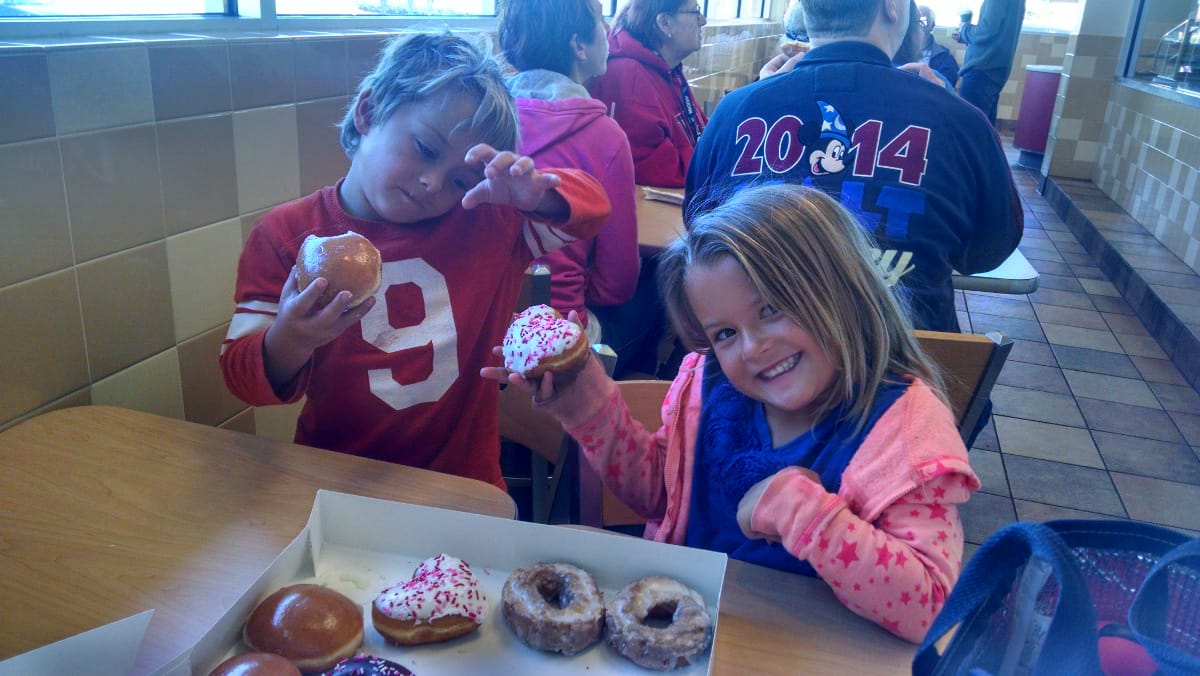 The kids wanted Krispy Kreme donuts for breakfast. If you have never had a hot Krispy Kreme donut fresh off of the line you need to! YUMMY!!