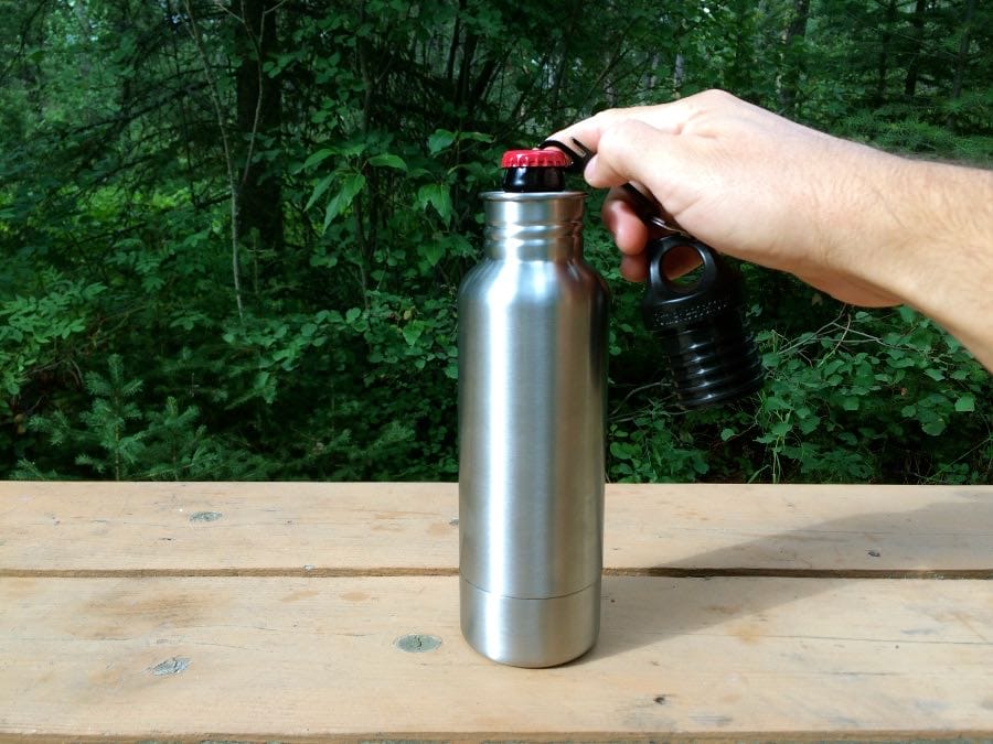 BottleKeeper is a neoprene-lined stainless steel bottle that unscrews at the bottom to allow a beer bottle to fit snuggly inside. It keeps your bottle of beer cold and secure, which is a great combo.