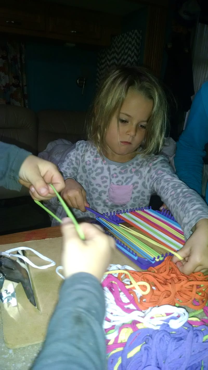 When I was at the store I did buy a knitting starter kit – I have been wanting to learn to knit for a long time! So I talked myself through settling into our day and went on to you tube to figure out this knitting thing! It was actually pretty cool! The kids kept checking in with me to see what I was doing and they were really interested in it! Eventually I got the hang of it and was able to knit a few rows. That is as far as I have gotten . . . hoping when we settle down in Florida I can start working on it again!