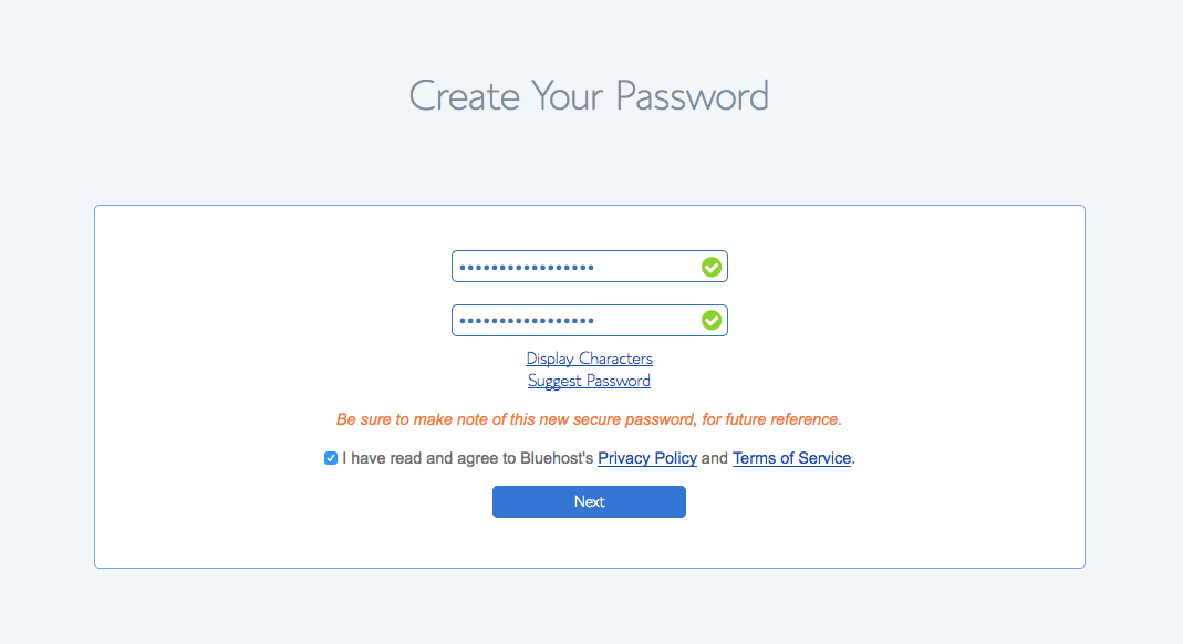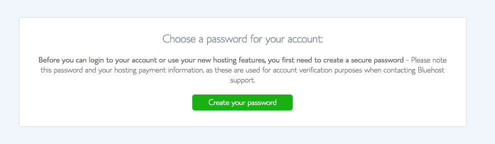 You’ll see a summary of all the details you just entered in the past 6 steps. The next thing to do to start a blog is to get your login set up. To do this, click “create your password”.