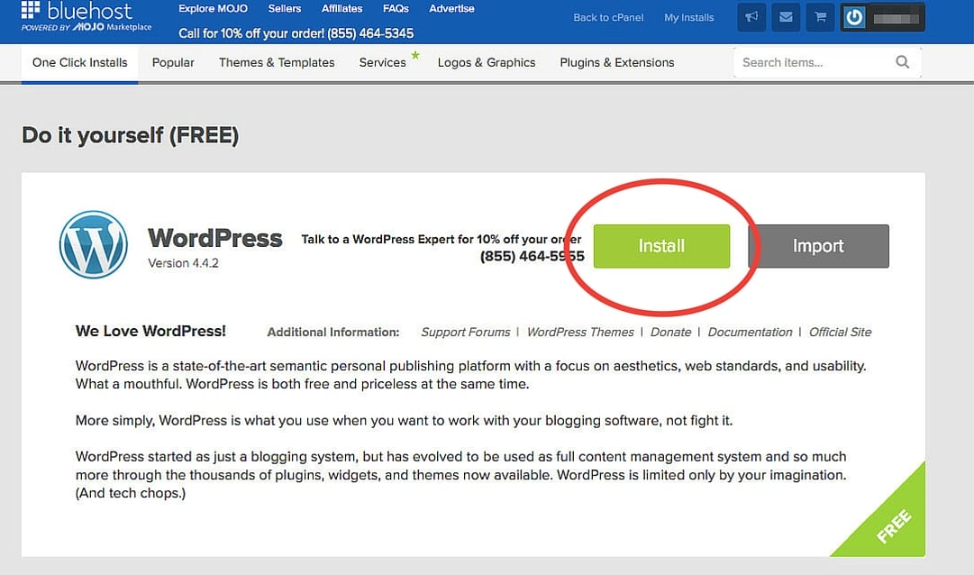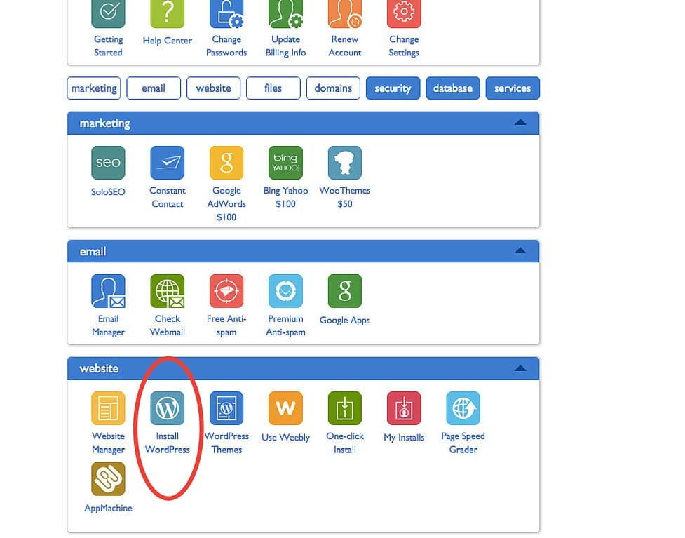 11. Now you’re really in. This is CPanel. This is where your entire website can be managed from. As you can see, there are a TON of buttons. Let’s avoid confusion and not look at them all right now. Just look for the one that says Install WordPress which is under the website section. Then click it!
