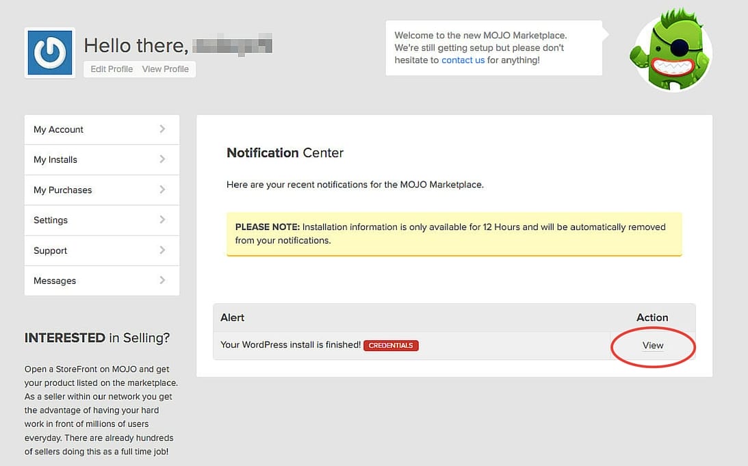 16. You’ll be taken into your Notification Center. When here, click “View” under the “Action” column.