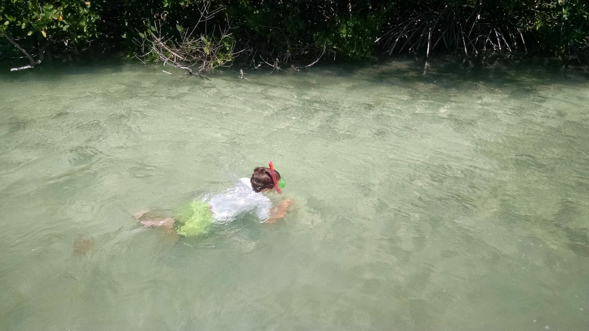 Carson use to have a fear of swimming in the ocean because he was afraid a shark was going to get him – I have the same fear!! But on this last trip he was the first one in the water and he had his goggles and snorkel gear on and was trying to find fish and other animals.