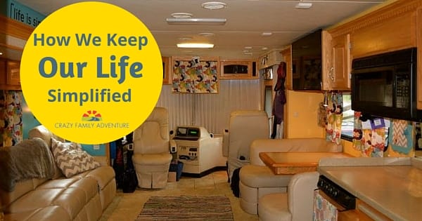 Now that we have downsized to everything we own (minus 4 bins in my parent’s storage unit) in our 39 foot motorhome, we have learned a few tricks to keep things simplified.