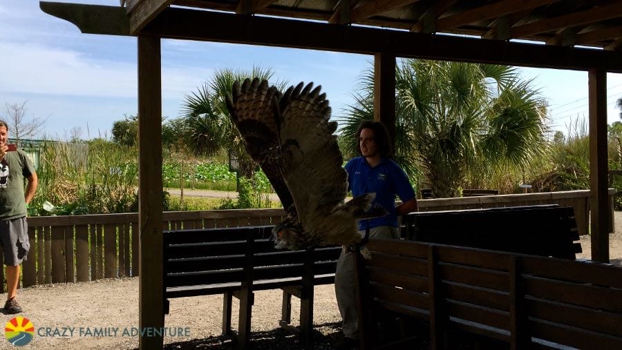 We were one of the only people checking out the exhibits, so I think we got preferential treatment because we were also able to watch an awesome barn own fly to his handler. We were up close and got a great view of this beautiful animal.