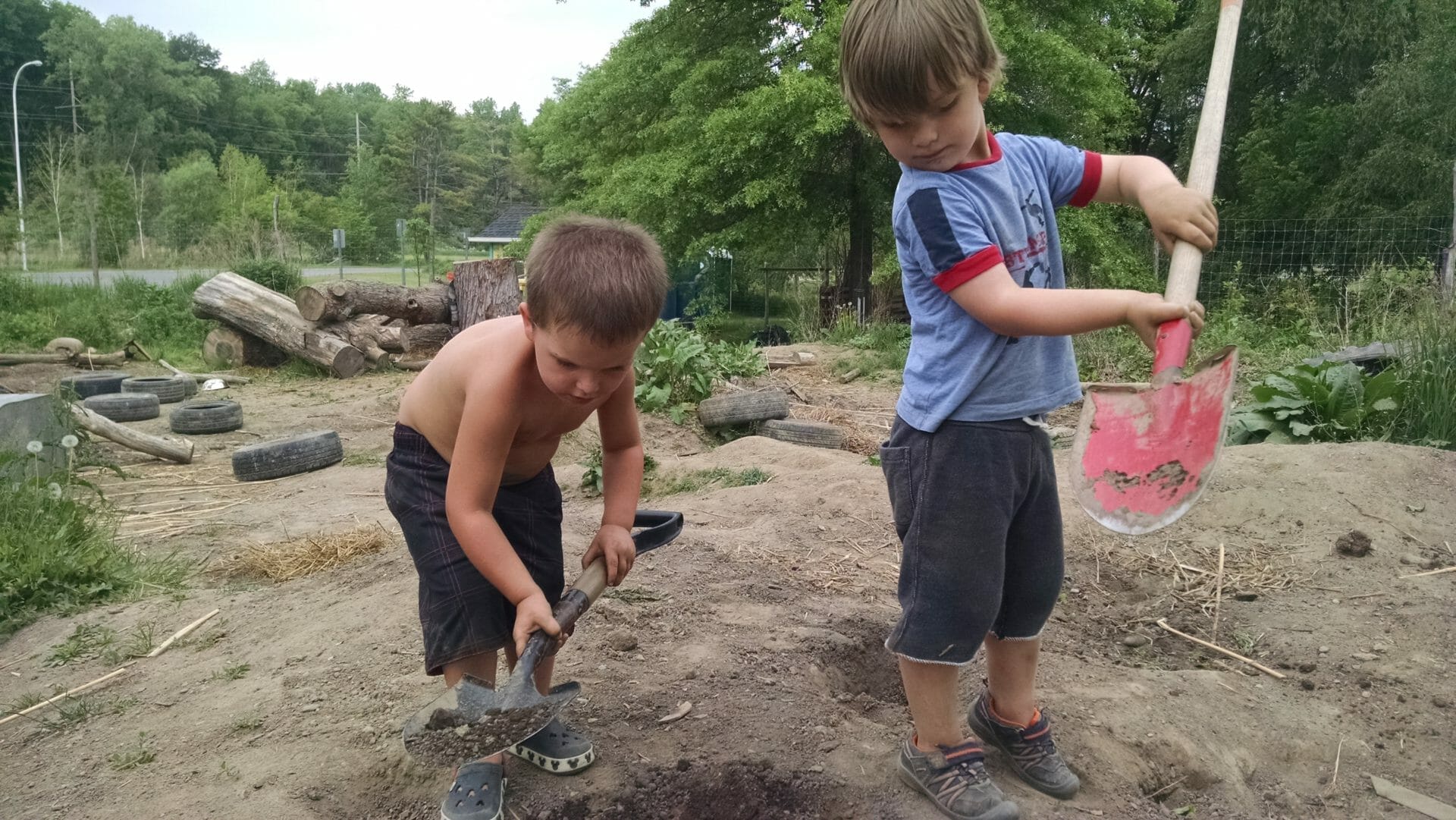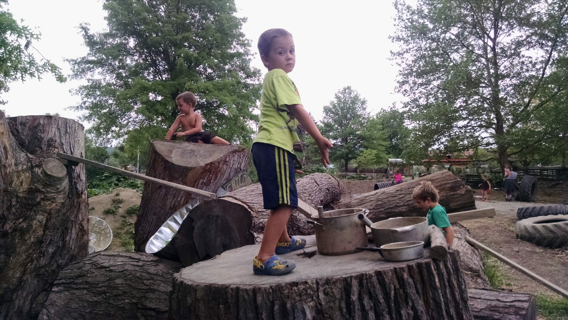 I had just as much fun as the kids playing right along side them. We built a slide out of an old slide and tires. Dug holes, made an outside kitchen, tried to make a bridge out of wood, played in a tree, and overall just had a great time!