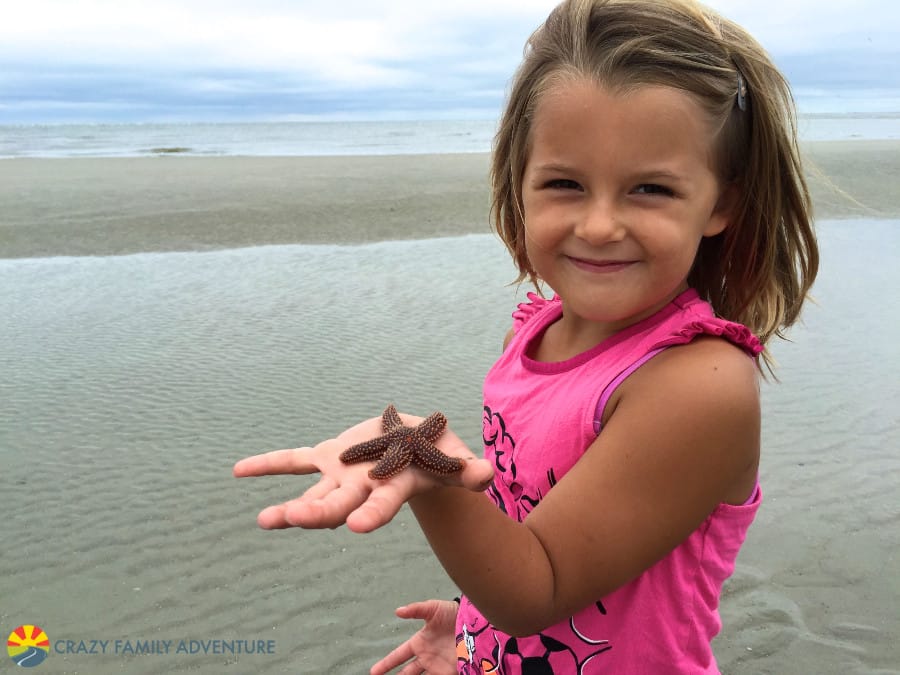After the kids were done eating they took off and found a tide pool to splash around in. A few minutes later, they came running back to tell us to come look. When we walked over there we saw that they had found a bunch of live starfish! They were really cool.