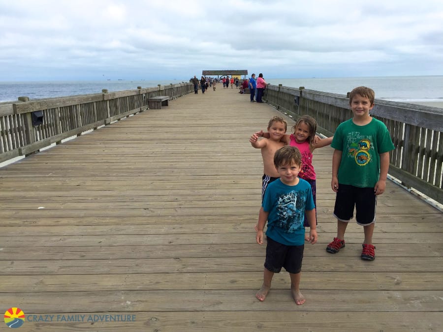 Opposite the big sandbar (closer to Pirate Fest) is a large pier. The pier had a bathroom, snack shop, and a bar on it, all of which we needed at this point, so we went there next. The pier was huge and went way out over the ocean.