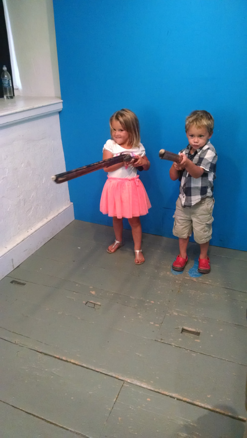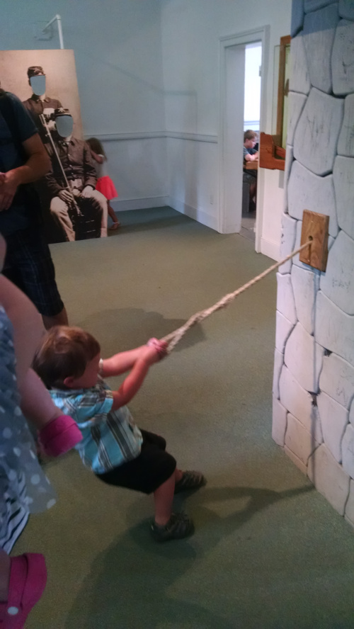 Half way through the tour they dropped us off at the Fort and we were able to walk around and participate in a few activities. They have a really cool kids area in the fort where the kids can do a lot of hands on activities. Carson was also able to do a practice drill with the officers at the Fort! After that we stopped on the terrace for a drink – the view was amazing – we then got back on the carriage for the rest of the tour back into town.
