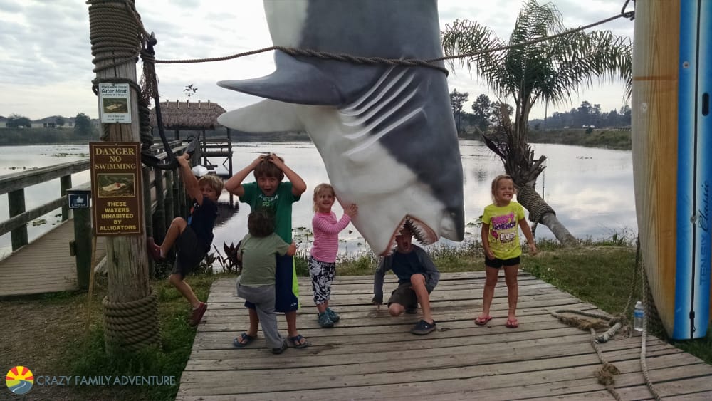 They have some great photo ops right by the parking lot. A giant shark you can stick your head into and a pier you can walk out on where it looks like there are alligators and birds. But if you look closer you will have to decide for yourself if they are real or not! The kids swore they were.