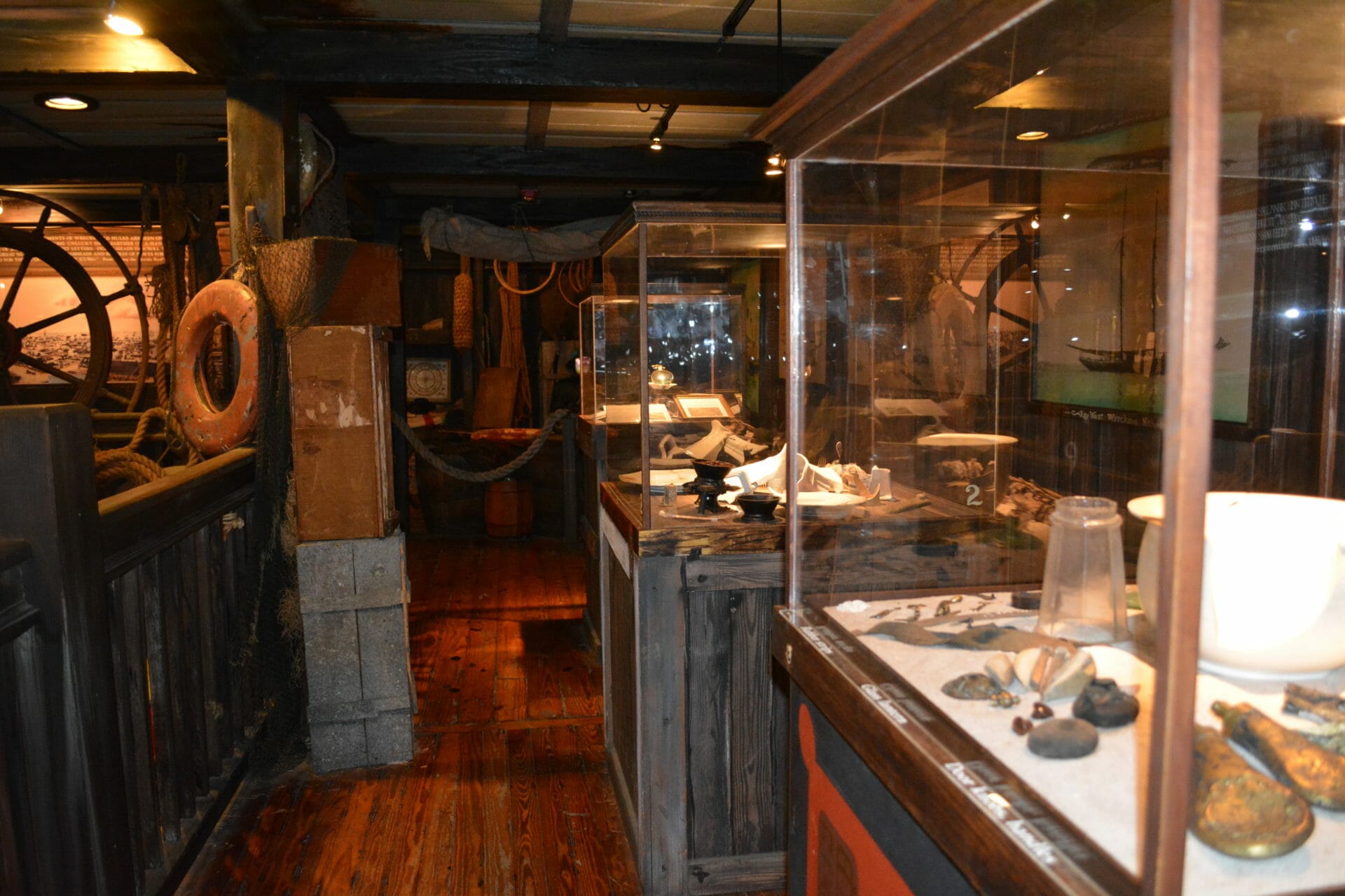 Then you can go up to the second floor to checkout more artifacts from shipwrecks. I didn’t get to see much since I was chasing Knox the whole time. But I did really like the mini ships they had on display and the old school scuba gear.