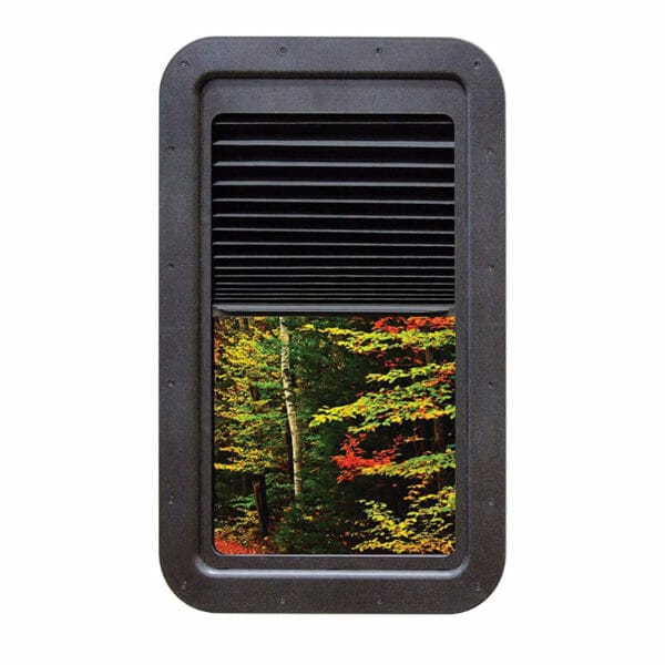 Upgrade Your Door Window with the Slim Shade when you need it, see out when you want! Directly replaces existing window and frame or add to door with no window with the template that is provided. Complete unit comes with black frame, tinted window glass and recessed pleated shade. Easily installs with only a screwdriver. Screws included. Fits most RV doors with a 12″ x 21″ radius corner window. Made in USA. Packaged.