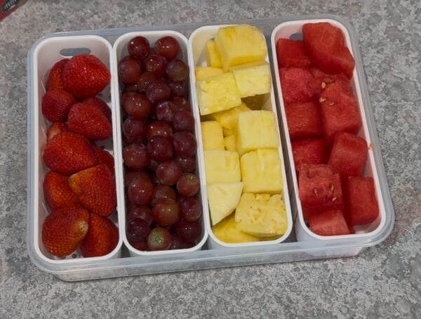 These work great for fruit, vegetables and snacks! The cover clicks into place securely.