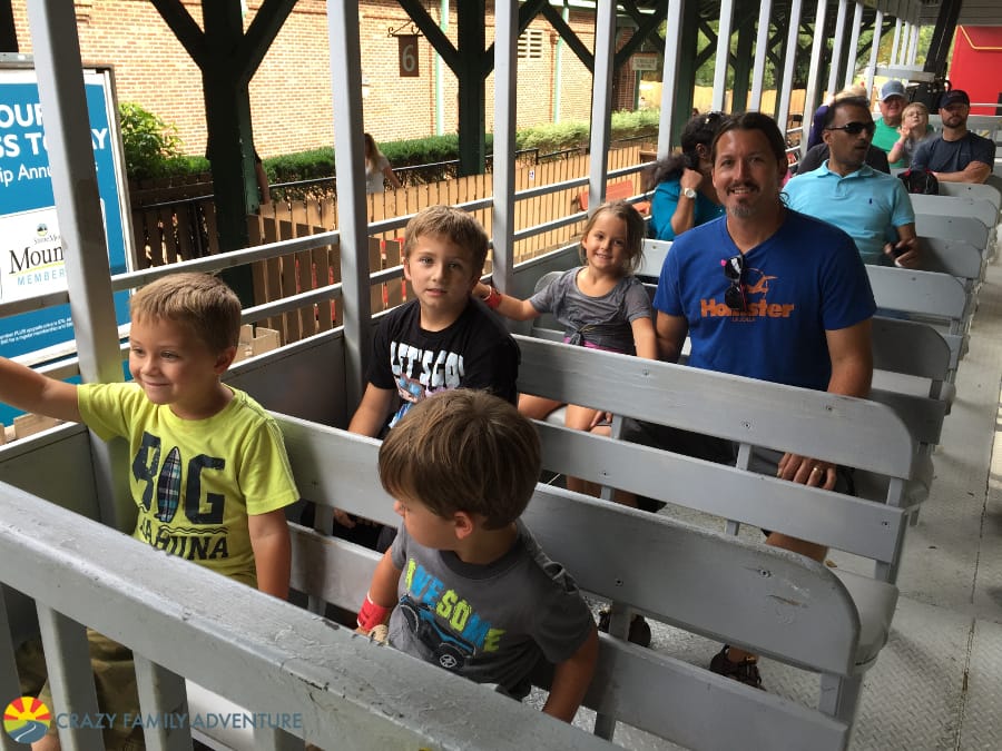 By this time we were all crashing after a long day of fun. We hopped aboard the Scenic Railroad train, literally at the last minute. We took a nice 40 minute train ride around the mountain and heard some of the history of the mountain while on board. It was a nice way to relax for a bit on a scenic tour!