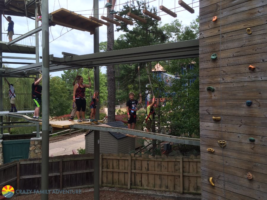 Stone Mountain is an attraction park that has many fun things for all ages. Our older kids (those 44″ and above) liked SkyHike the best. This is a huge rope course that challenged the kids and Bryanna!