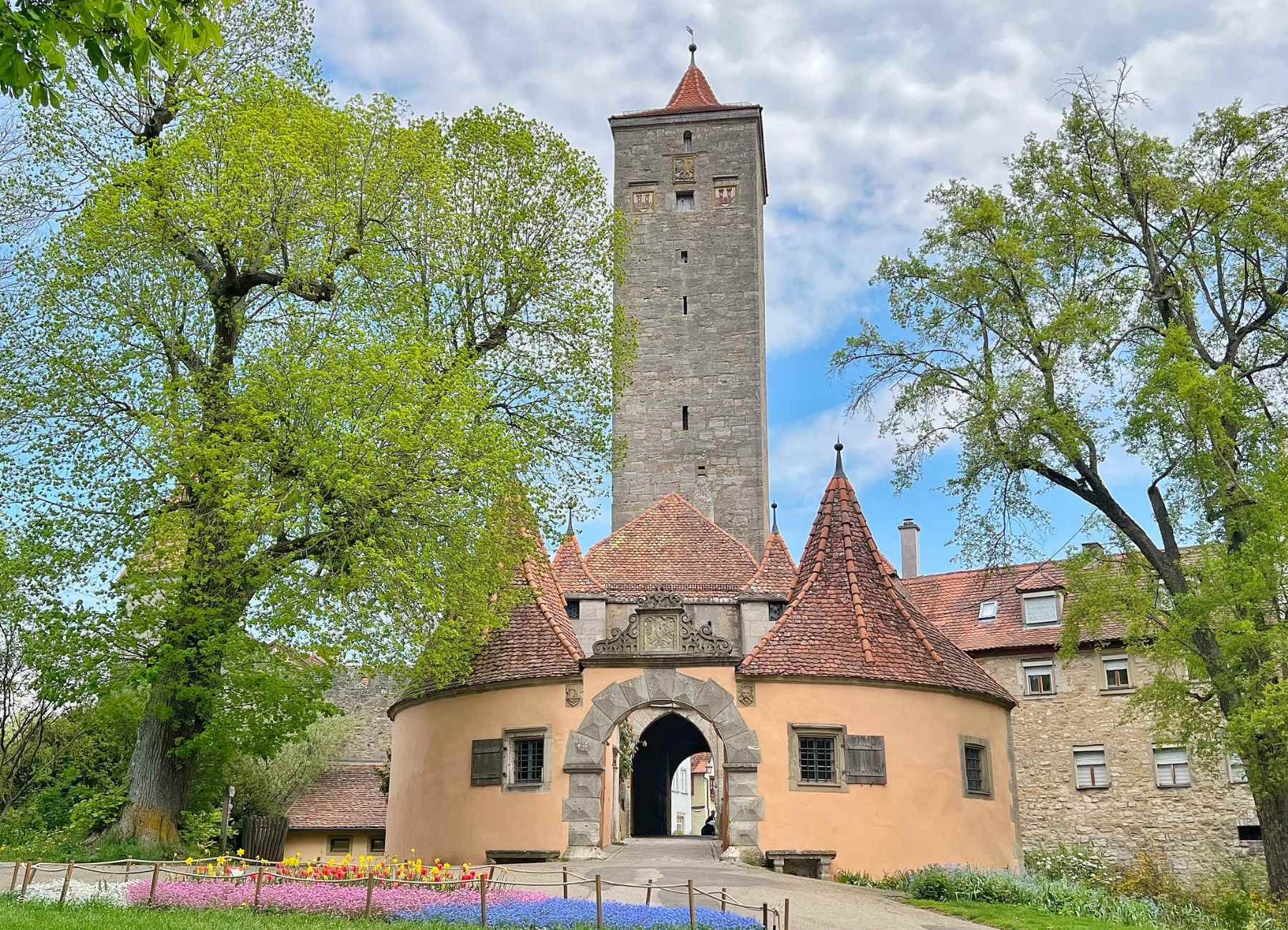 Walk outside the city walls through Castle Gate and into a large green space. The castle gardens were beautiful when we were there (in April). Head out to the scenic view at the end of the trail to look out over Tauber Valley or just turn around and take in the beautiful Castle Gate.