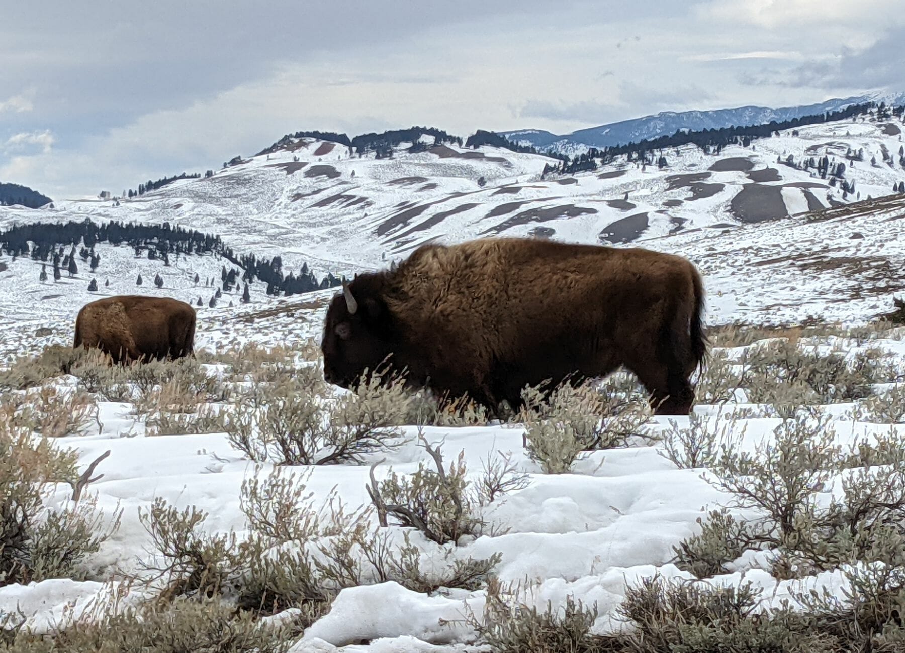 It was an amazing opportunity to see a group of otters playing along the river and sliding on the icy snow. We also saw bison, a coyote, and a bear den that a lot of people were viewing, hoping to see the bear pop its head out.